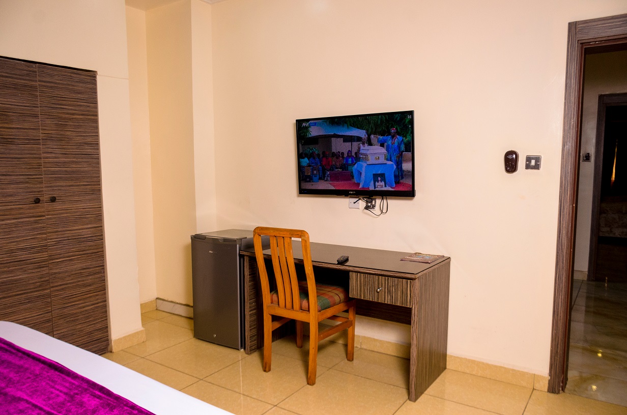 Step into our Deluxe Room, where every detail is designed for your ultimate comfort. This spacious room features a plush king-sized bed, a modern TV for your entertainment, and a refrigerator to keep your drinks cool.